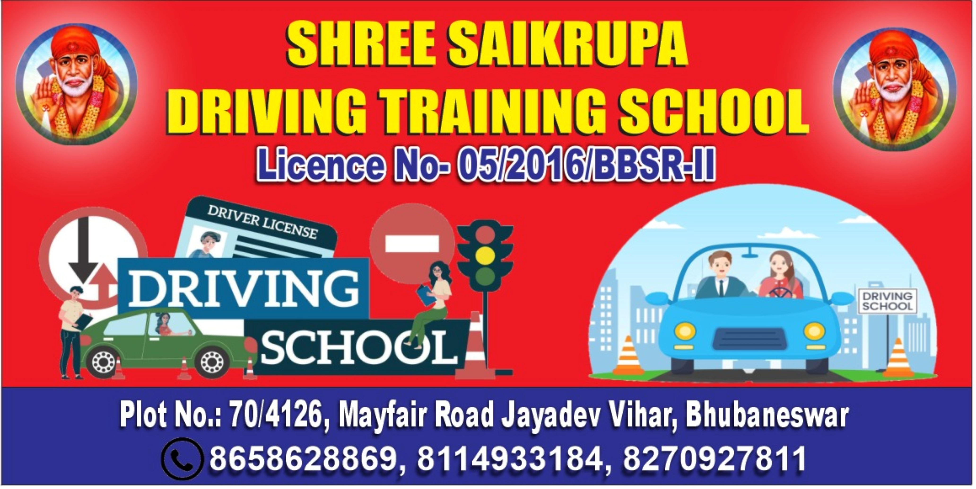 Welcome to SHREE SAIKRUPA DRIVING TRAINING SCHOOL – the most trusted and professional driving training agency in your city, proudly located at Mayfair Road, Jayadev Vihar, Bhubaneswar, Odisha. Under the expert leadership of Mr. Sunil Sahoo, our mission is to create skilled, confident, and responsible drivers who are well-equipped to handle the challenges of modern roads. With a strong emphasis on road safety and discipline, we provide comprehensive driving lessons tailored to meet the needs of both beginners and experienced drivers. Our team of highly trained and certified instructors ensures that each student receives personalized guidance throughout their training journey. From basic vehicle control to advanced driving techniques, we cover every essential aspect of safe driving. At SHREE SAIKRUPA DRIVING TRAINING SCHOOL, we use modern vehicles and the latest training methods to offer a stress-free and effective learning experience. Our goal is not just to help you pass the driving test on your first attempt, but to empower you with the confidence and knowledge to drive safely for life. We also offer flexible training schedules, affordable fee structures, and one-on-one attention to make learning convenient and enjoyable. Whether you're a student, working professional, or homemaker, we have the right driving course for you. Join us today and take the first step towards your independence behind the wheel. With our dedication, experience, and student-first approach, your journey to becoming a safe and skilled driver begins here.